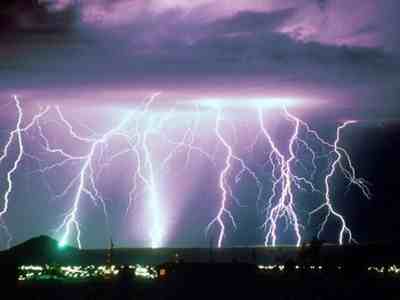 W czasie burzy napięcie pomiędzy Ziemi± a chmur± dochodzi do 100 000 000V. Prąd płyn±cy w błyskawicy ma natężenie w szczycie około 10 000 A a czasami znacznie więcej. Zwykła letnia burza wyzwala energię o mocy trzynastokrotnie większej niż energia bomby atomowej zrzuconej na Hiroszimę, której ładunek odpowiadał 20 000 ton TNT (trotylu - trójnitrotoluenu).