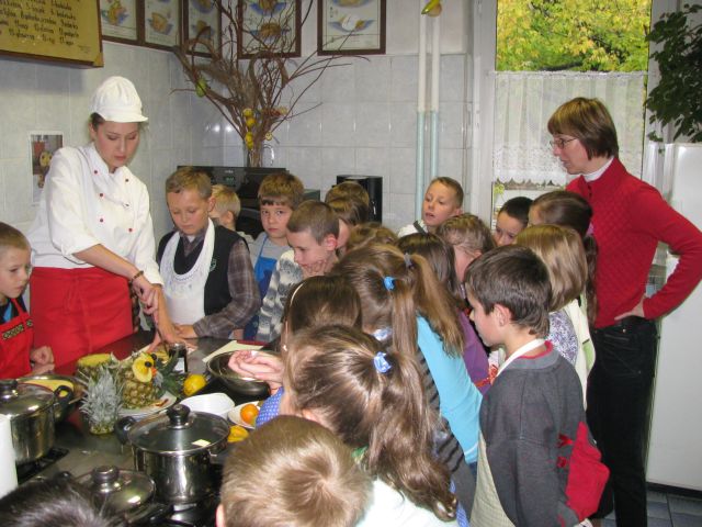 samodzielnie, pod opieką uczniów drugiej grupy klasy IK przyrządzały sałatki owocowe. Były też uczestnikami pokazu carvingu,