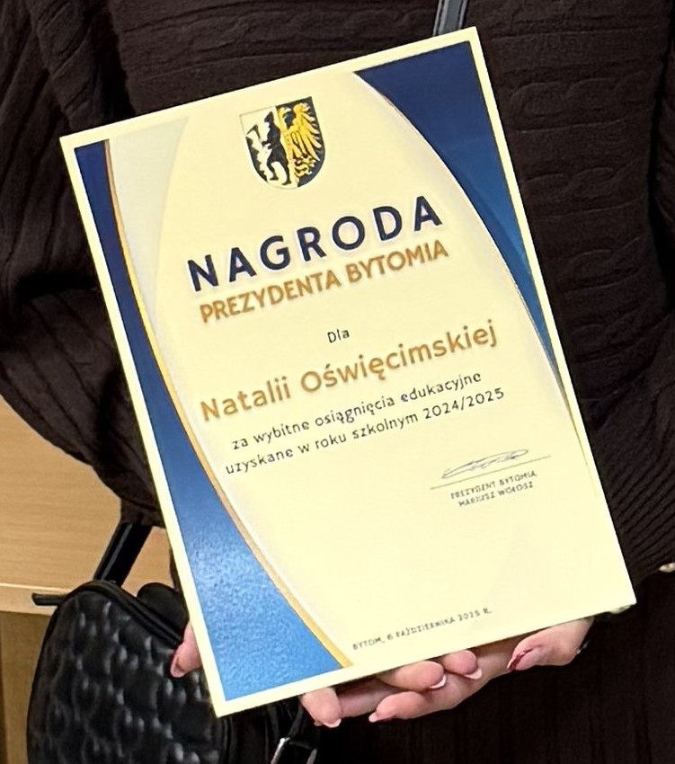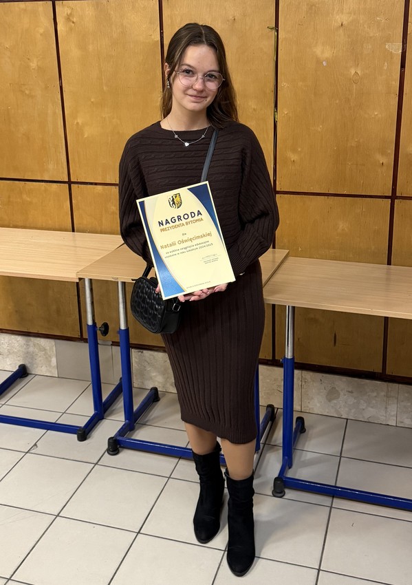 Natalia Oświęcimska, uczennica klasy 3U Technikum nr 1 w ZSGH w Bytomiu, została dziś uhonorowana Nagrodą Prezydenta