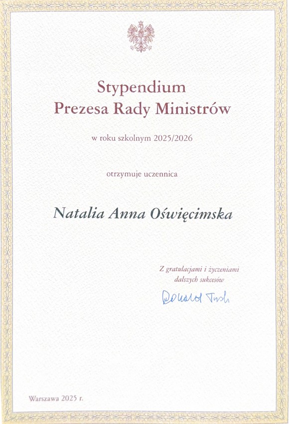 ponadpodstawowych województwa śląskiego. Wśród wyróżnionych znalazła się Natalia Oświęcimska,