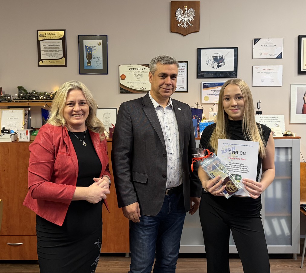 Z dumą i ogromną radością informuję, że Natalia Oświęcimska, uczennica klasy 3U Technikum nr 1 w ZSGH w Bytomiu, została dziś uhonorowana Nagrodą Prezydenta Bytomia.