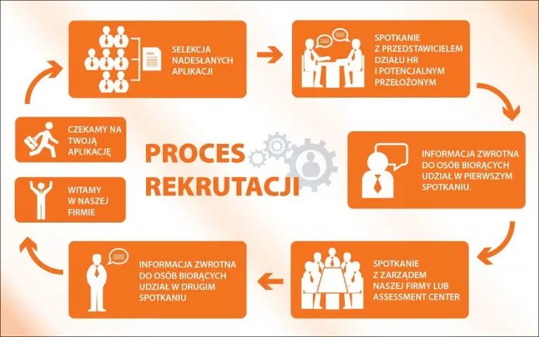 Infografiki – procesy. I nie chodzi tu bynajmniej o wielkie procesy dziejowe czy historyczne. Wręcz przeciwnie. Infografiki lubią prostotę, dlatego jeśli chcesz za ich pomocą przedstawić długotrwałe, wieloetapowe procesy zachodzące w firmie, podziel je na mniejsze części. Materiały wizualizujące procesy powinny charakteryzować się klarownością i umiarkowaniem w kwestii liczby przekazywanych informacji. To znakomity sposób, by przedstawić poszczególne etapy rekrutacji na dane stanowisko.
