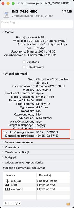 Jeśli jednak dostaliśmy oryginalne pliki ze zdjęciami, to dane geotagowania najprawdopodobniej są wciąż zachowane,
