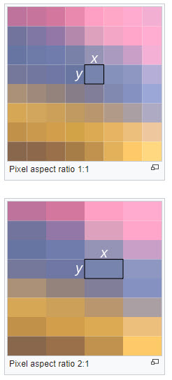 wklejono obrazek z Wikipedii, gdzie pokazana jest dobrze proporcja pixeli kwadratowych i prostokątnych. Bezpieczniej