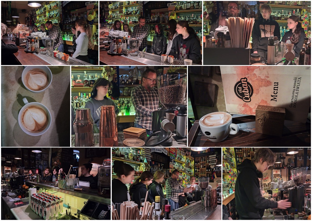Dnia 06.02.2026 cześć klasy 2HT wzięła udział w specjalistycznym kursie baristy zorganizowanym w barze Old Cuban przez Śląską Akademię Barmana w Katowicach. W trakcie kursu młodzież uczestniczyła w wykładzie a także poznała techniki sporządzania kawy i nauczyła się parzyć różne rodzaje kaw. Dużym wyzwaniem okazało się perfekcyjne spienianie mleka. Podczas kursu było dużo śmiechu, dobrej zabawy i pozytywnych wrażeń. |